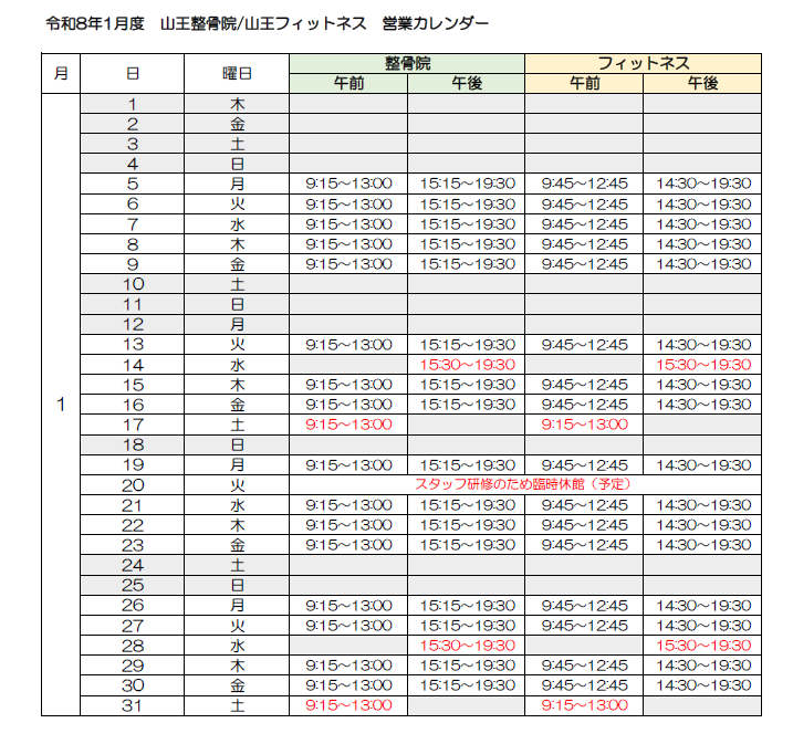 平素より、山王整骨院・山王フィットネスをご利用いただき、厚く御礼申し上げます。